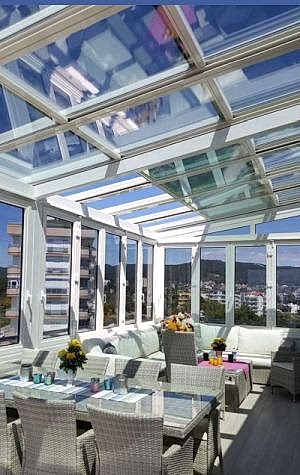 Erbir Yapı Açılır Cam Tavan Sistemlerimiz Fonksiyoneldir, yaz ve kış aylarında rahat & konforlu kullanılabilen mekanlar yaratır.